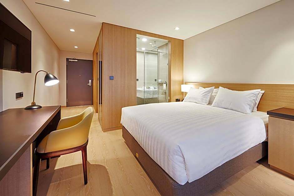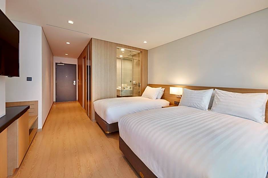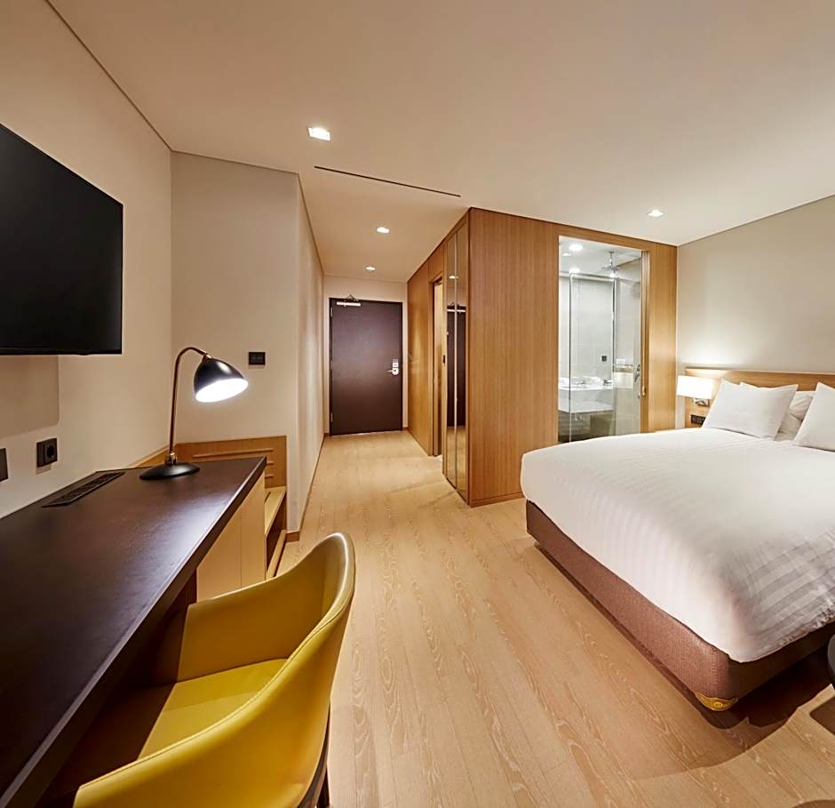 The location is in between the Pacific ocean and the lake. It is not too far from the Gangneung KTX station as well. There are a lot of restaurants nearby as well. There is a CU unside the hotel, two other convenience stores on the street nearby. Clean room and facility overall. The bathroom is big and the room size was descent. Comfortable bed and pillows. Easy checkout on the tablet.