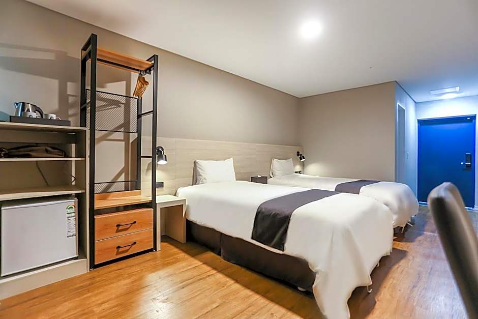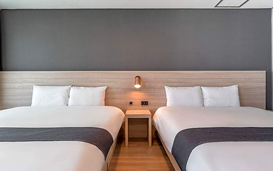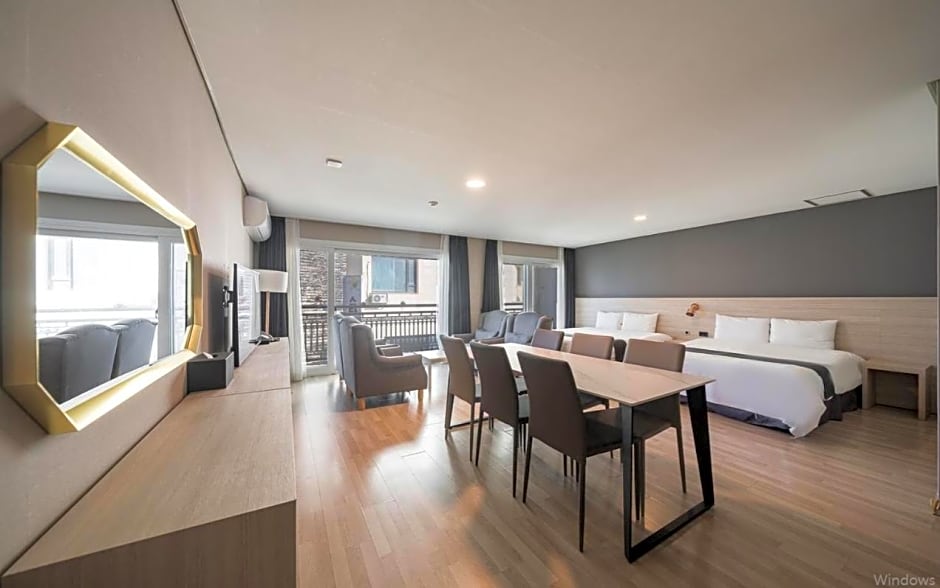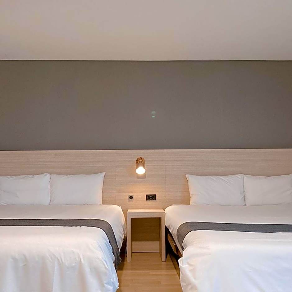 Extremely convenient for the beach, big clean connecting rooms (double & 2 big singles). Firm comfortable beds, table & 4 chairs inroom, plus clothes rack handy for drying beachwear. Free loan of big inflatable rings for in the sea. Close to shops & restaurants including great Japanese restaurant. Convenient for lake, and for Gangneung k pop/k drama taxi tour, & historical tour. Helpful staff. Extremely good value. Recommended.