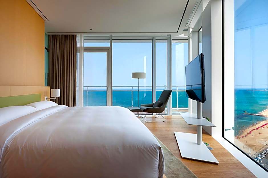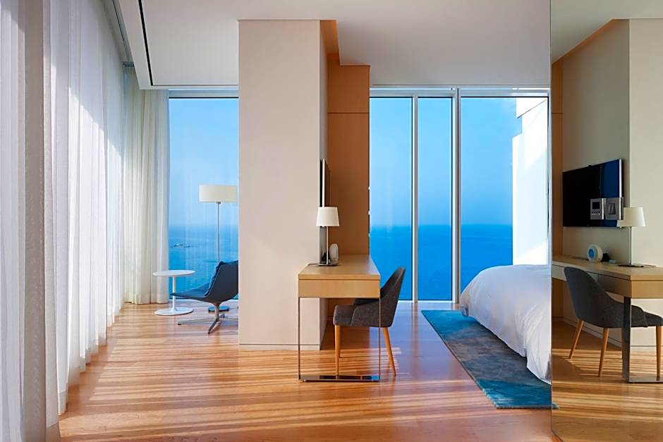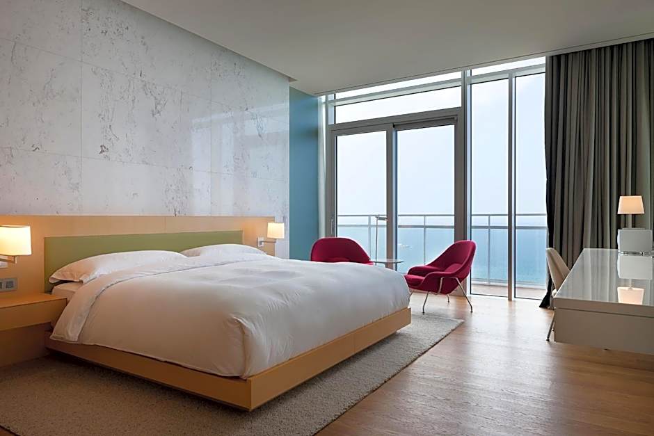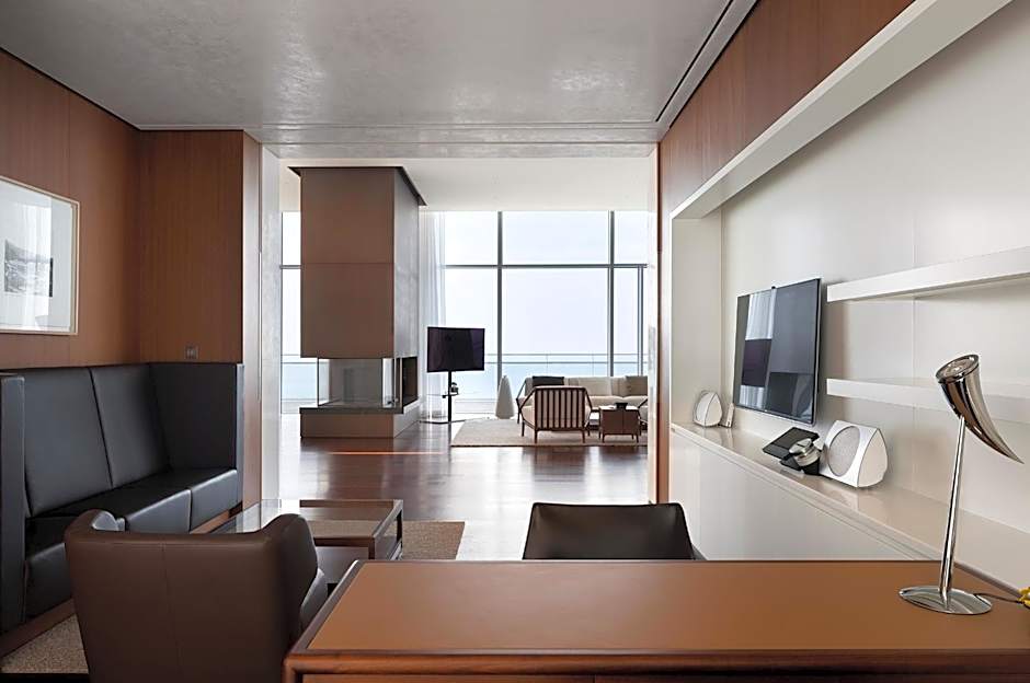 Two on-site dining options invite culinary exploration: The Restaurant, delivered in a Modern setting, serves Italian and Jewish-inspired dishes, while Chef’s Table offers a second Modern space with Italian-Jewish flavors. A stylish bar nearby provides a chic spot for evening cocktails, and streaming service like Netflix adds a cozy, movie-night option after a day by the sea.
