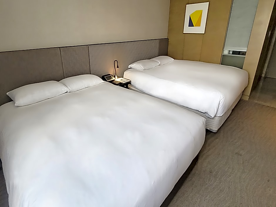 The room was larger than expected with a huge window overlooking the harbour. There were two comfortable chairs and a table to enjoy the view. The room was spotlessly clean and well laid out, with lots of space for clothes and luggage. The front desk staff were very helpful and phoned for a taxi whenever we requested one. The air-conditioner worked well.