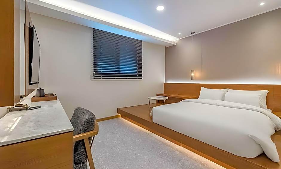 The hotel has a very cool and innovative vibe with a nice roof terrace. The bed was super comfortable and super clean. I cannot recommend this hotel enough, if you want to stay right in front of Hakdong beach, this would be a great place to stay.