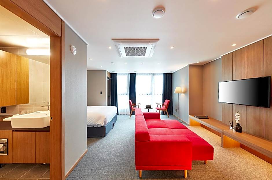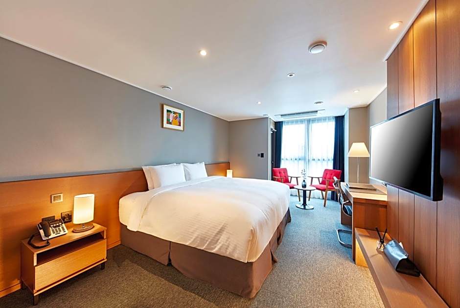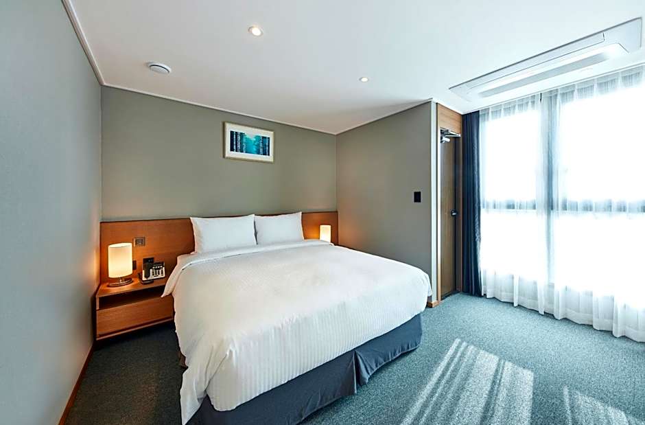 We stayed in the Deluxe Double Room. Very nice room, spacious and cozy. The couch and table create a nice homely feel and the bed was fantastic (large and comfortable). Great location. The hotel is just off the major route through Gumi and has a number of restaurants and shops in the vicinity. Check-in went smoothly and staff speaks English.