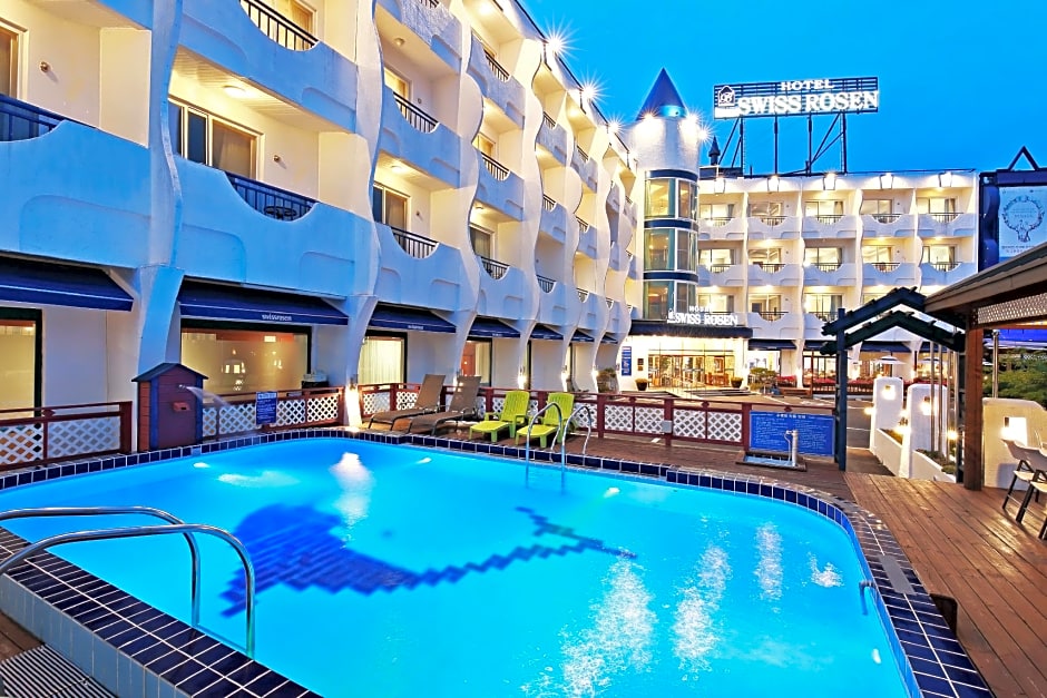 Guests at the Benikea Swiss Rosen Hotel can spend their time enjoying a variety of leisure amenities. The hotel features an outdoor swimming pool, perfect for taking a refreshing dip and lounging in the sun. For additional relaxation, guests can unwind in the hot tub or on the sun deck, soaking up the beautiful surroundings. Beach umbrellas and chairs are also available, allowing guests to bask in the beachside atmosphere.