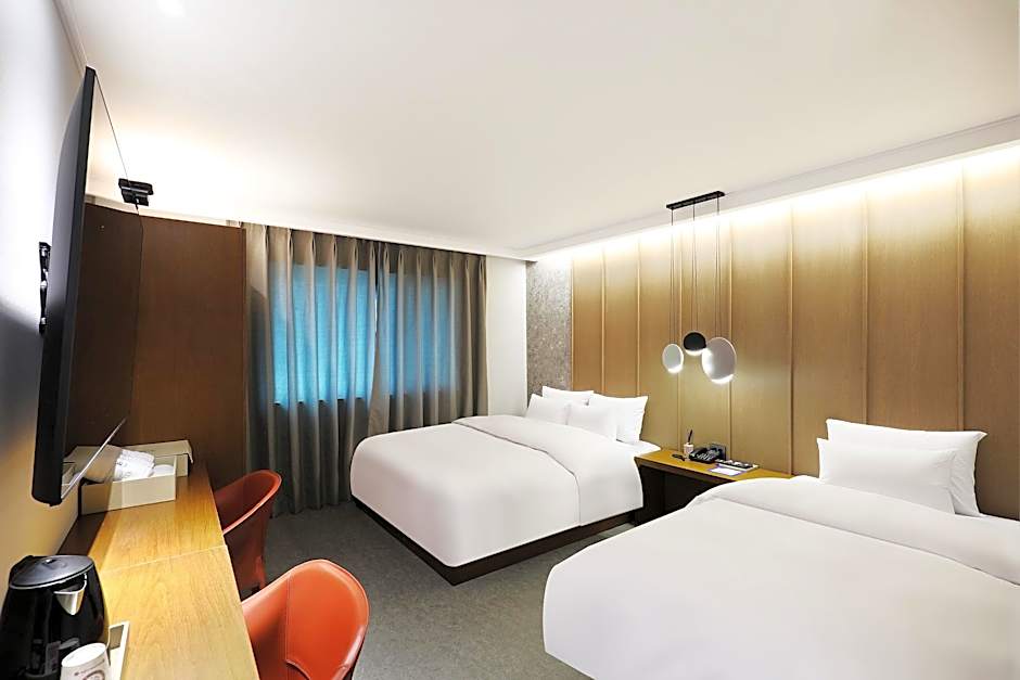 We took the Superior Twin Room, 3 adults. The best part tht im grateful for is tht there was an AI staff in the ceiling camera to help us get a taxi at 4AM! it speaks english too! Great experience! Haha (human staff only worked until 10pm). Hotel was easily located from Naver app, we walked from train station (2 stops before Incheon airport). The hotel was modern and beautiful! The lobby had complimentary coffee machine, filtered water and ice! There were vending machines for amenities like toothbrush etc. But not sure if its free. Nice ambience from the lobby all through to the room. We were greeted by the staff and she even remembered my name and was expecting me as we arrived at 8pm (she told us about the AI camera in the ceiling). As it is common in korea hotels to be given only small sized towels, she gave us bath sized towels without us asking! Theres a lift up to the room, the room was rather small for us to unload our luggages but it was ok as we will be headed to the airport next morning anyway. I loved tht the room had an air purifier and the disinfectant closet, they had a smart toilet, lol the seats were warm! The room flooring is heated too. The bed sheets were nice and had comfy pillows. They provided bath amenities and had a full box of hair dryer, combs and such. Theres a water kettle in the room with cups for tea and coffee provided.