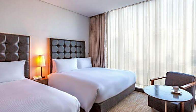 Orakai Songdo Park Hotel offers Deluxe Double Rooms with Park View, Deluxe Twin Rooms with Park View, Junior Suites, and Deluxe Twin and Double Rooms. All rooms are non-smoking, have either a double or twin beds, and can accommodate 2 adults without children. Room sizes range from 323 sqft for the Double and Twin Rooms to 495 sqft for the Junior Suite.