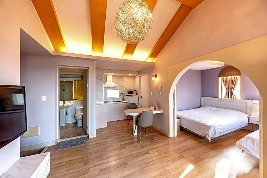 Dyne Resort sits about 10,2mi from Jeju City center, at 400-9, Aewolhaean-Ro, Gonae-Ri, making arrival easy. The setting is garden-forward, complemented by a terrace and garden views. On-site 레스토랑 #1 offers meals without stepping off the grounds, and an outdoor pool is seasonal and adults-only. Free live music/performances add a lively touch, while private parking and complimentary wifi keep mornings and evenings hassle-free.