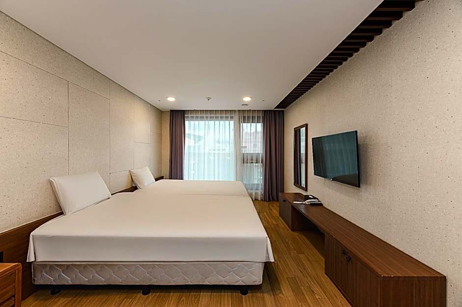 is a four-star retreat in Jeju City, South Korea, just from the city center. Nestled at 56, Sammu-Ro, this hotel offers a bright, modern vibe that’s perfect for island adventures and easy access to Jeju’s sights and flavors.