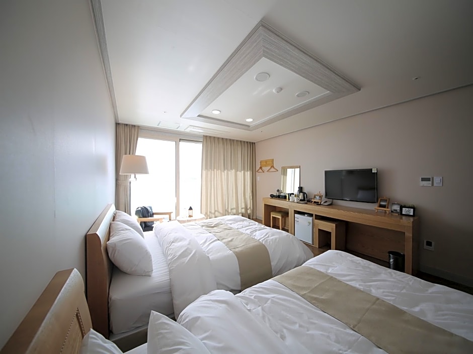 At Hotel Aroha Jeju, guests can spend their time enjoying the beachfront location with private parking available. The hotel offers a terrace with a beautiful view where guests can relax. Whether in a wheelchair-accessible room or a non-smoking one, all guests can access the beach easily. The soundproof rooms provide a quiet environment for a peaceful stay. With air conditioning and private bathrooms in each room, guests can feel comfortable during their stay. The hotel also provides Wi-Fi for those wishing to stay connected. Whether lounging on the beach, relaxing on the terrace, or enjoying the soundproof rooms, guests can make the most of their leisure time at Hotel Aroha Jeju.