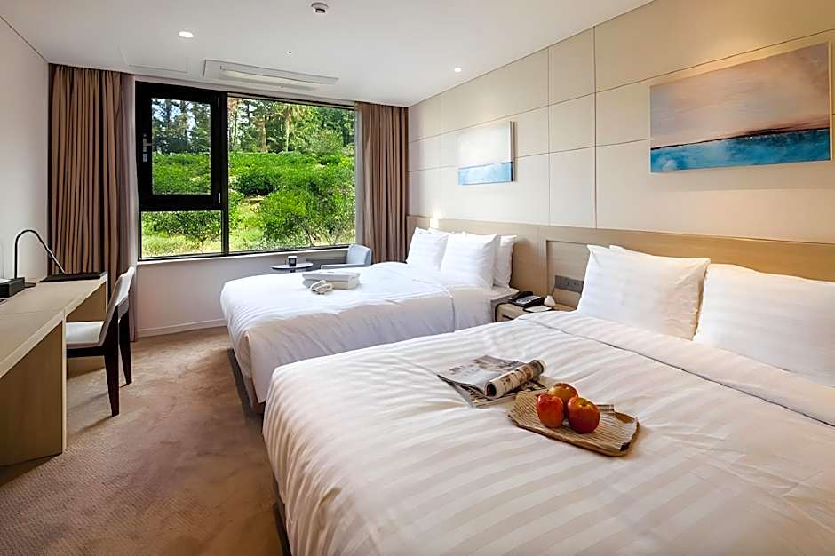 Room options at Hotel Theborn Jeju span from compact 302-square-foot Standard, Deluxe, and Deluxe Family rooms to generously proportioned layouts suited for longer stays. The Suite Ondol is 646 square feet and accommodates 2 adults and 1 child, while the Luxury Suite offers 915 square feet for the same occupancy. For multi-room setups, the Suite, 2 Bedroom also measures 915 square feet, and the Run Of House can host up to 10 adults and 6 children. The Presidential Suite (603 sqft) and the Junior Suite (453 sqft) provide additional spacious choices, and the Korean Style, Quadruple (603 sqft) adds a distinct option. The Family, Sea View room is available for guests seeking a seaside ambiance and accommodates 2 adults and 0 children. All rooms are non-smoking.