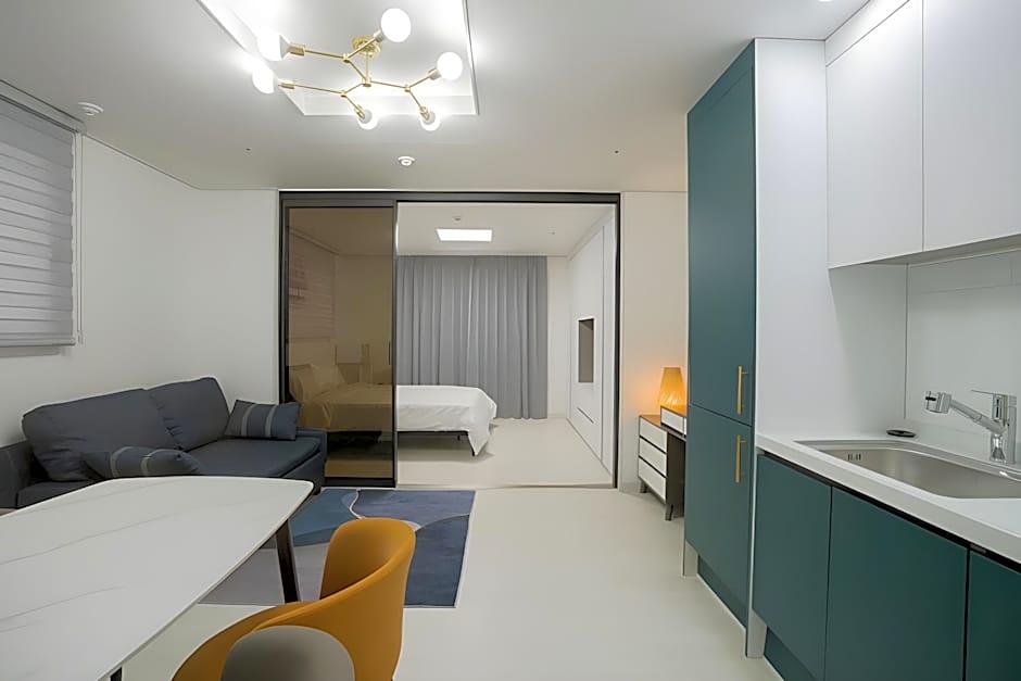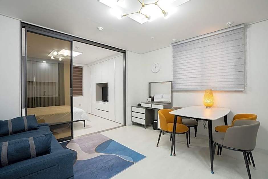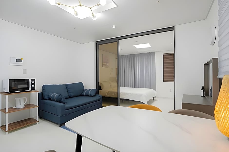 is a 3-star apart-hotel in Jeju City, South Korea, located just from the city center. The address is 16-8 Seomun-ro 4-gil, Jeju City, a convenient foothold for exploring the area.