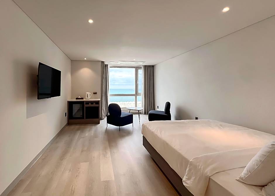 I had an excellent experience at Ocean Suites Jeju Island. The rooms were comfortable, spacious, and very clean, perfect for relaxing after a day of exploring the island. The location is ideal, close to many points of interest and offering a beautiful ocean view, which can be enjoyed from the room or the common areas. Although the hotel is a bit older, it is very well maintained, giving it a classic charm while still being comfortable. The facilities are adequate, and the staff was always friendly and attentive. Definitely a great option for those looking for comfort, a great location, and a peaceful stay in Jeju.