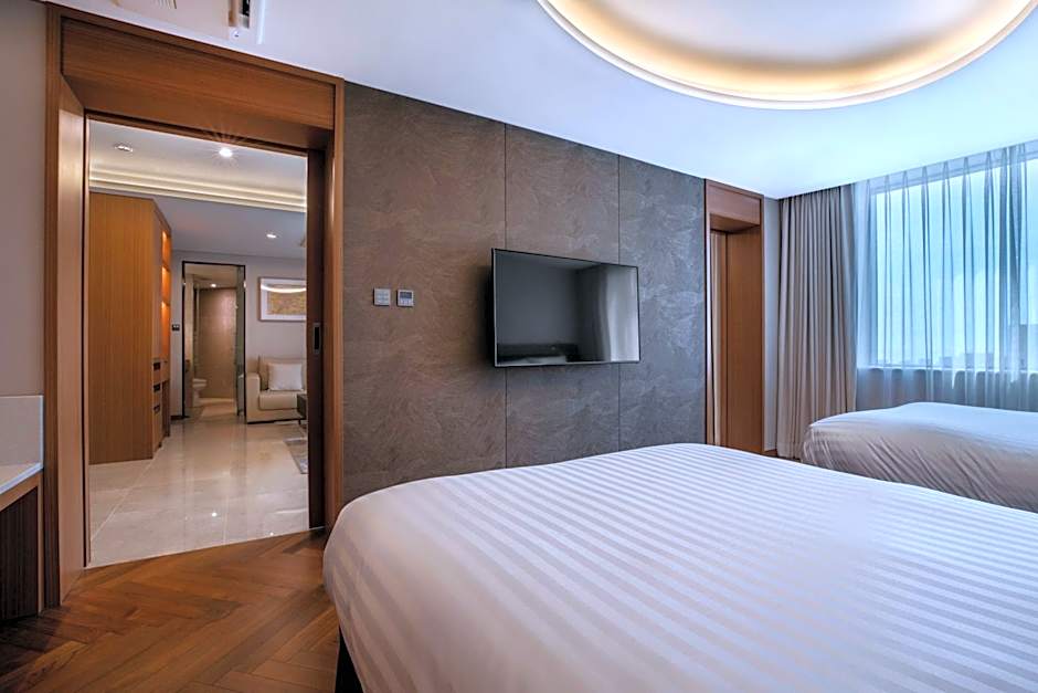 The room lineup covers a broad range of needs, from Standard Room to expansive suites. The Standard Room accommodates up to 4 adults and 3 children with a combination of a double and a twin bed, while larger options like Family Suite, Junior Suite, and Royal Suite welcome bigger groups. Many rooms offer park, city, or landmark views, and all feature air conditioning and soundproofing for a comfortable, peaceful stay.