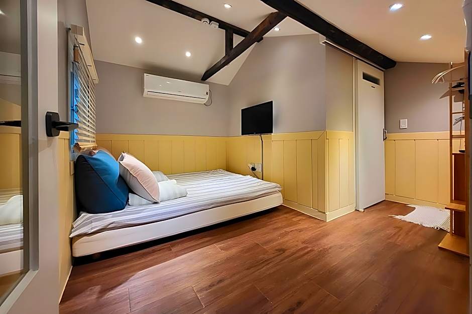 I travelled quite a lot around Korea in the past 3 years, and always have a similar budget for my accommodation. This is definitely the best place I have stayed at so far! It is a nice building with a few rooms, all of them equipped in a cute and stylish way. Nice materials, beautiful colours, stylish decoration. They pay attention to every tiny detail, and everything is in really good condition. We got a hearty and delicious breakfast - included! - in the cozy café/common area, and the nice lady even took a polaroid photo of us when we left, that we could take with us. It was a truly refreshing experience, especially compared to the grey concrete blocks we are used to in Korea. The location is also perfect, right in the area of Gunsan you would want to be walking around anyway. I highly recommend choosing this place for staying overnight in Gunsan!