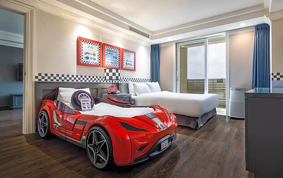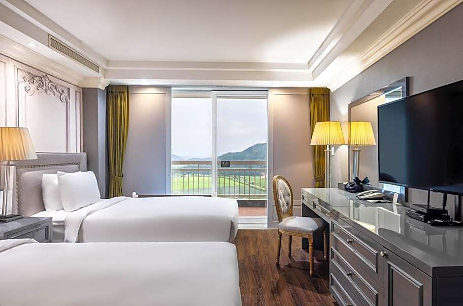 The twin room provides air conditioning, soundproof walls, a terrace with garden views as well as a private bathroom featuring a bath. The unit offers 2 beds. This room includes a package from May until June 2024 that offers: - Free access to indoor pool and sauna for 2 guests (once per stay) - Free access to Kids World for 1 adult and 1 child (once per stay) This package is provided when checking in from Sunday to Friday. Drink benefits are excluded for Kids World adult admission tickets.