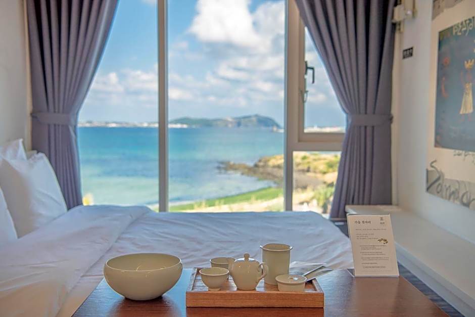 Superb sunrise views from the room. Room amenities are of good quality, pleasantly surprised there are rubber slippers for shower in case some guests need them. The tea appreciation session taught us how to correctly steep tea and we love the teas introduced. Mr Lee and the staff are friendly and helpful. Breakfast at Ojomiya was great too! Our first time trying some of the best Jeju home cooked soup and abalone porridge. Will definitely recommend to my friends 🙂