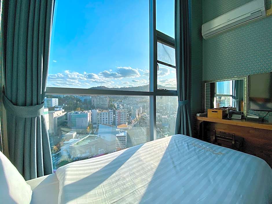 It was easy to find. The hotel sent me directions that were easy to follow; it was a good thing because Google maps isn't accurate there and the local mapping app was difficult for me to use. The directions they sent were perfect on the train from ICN. The receptionist was very kind and helpful. I had a very early flight and she arranged transportation for me since the train didn't run early enough. There was free water in the lobby. The location was good as it was close to the subway. They give you a little bag of amenities which include a toothbrush and toothpaste which was nice as well. There were plenty of outlets in the room. It was quiet. It's a great value for the money you spend.