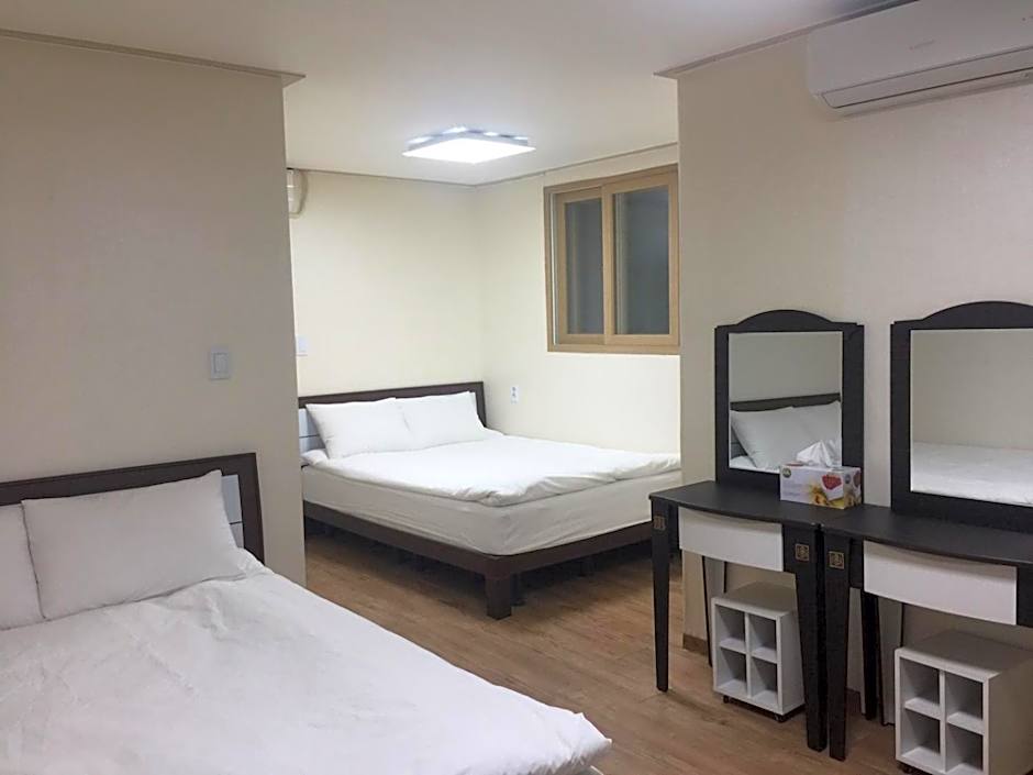Directly in front of bus stop at Dongdaemun History & Culture Center with bus no. 6001 from airport. 20 metres to metro station and many food & beverage and shopping malls around. Hosts speak enough English to settle you in. Room is clean and with all the necessary as a guesthouse so it was comfortable.