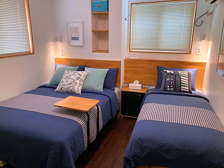 At Hostel Beige 2nd, the hotel offers single, double, and family rooms. Occupancy ranges from 1 person in single rooms to 4 people in family rooms. Smoking is not allowed in any of the rooms. Bed sizes vary from single in single rooms to queen in double rooms and king in family rooms.