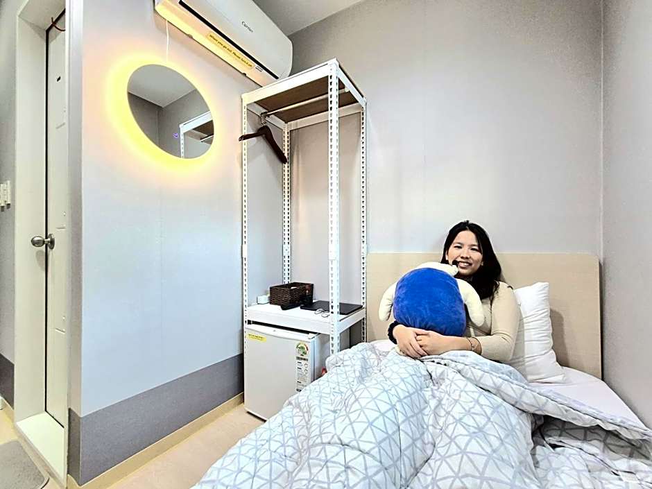 1. Location was near 7/11 store, bus station, airport bus station, subway, restaurants, and tourist spots 2. Water, food, shampoo, body wash, slippers were available 3. Curtain for the bed was available for privacy 4. Hostel owner and his nephew were very nice, accommodating, and spoke good English 5. Our room had its own shared bath room