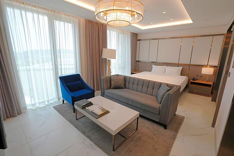 The spacious suite has 1 bedroom and 1 bathroom with a bath and free toiletries. This suite is air-conditioned and features a flat-screen TV with streaming services, a tea and coffee maker, a wardrobe and a safe deposit box. The unit has 1 bed.