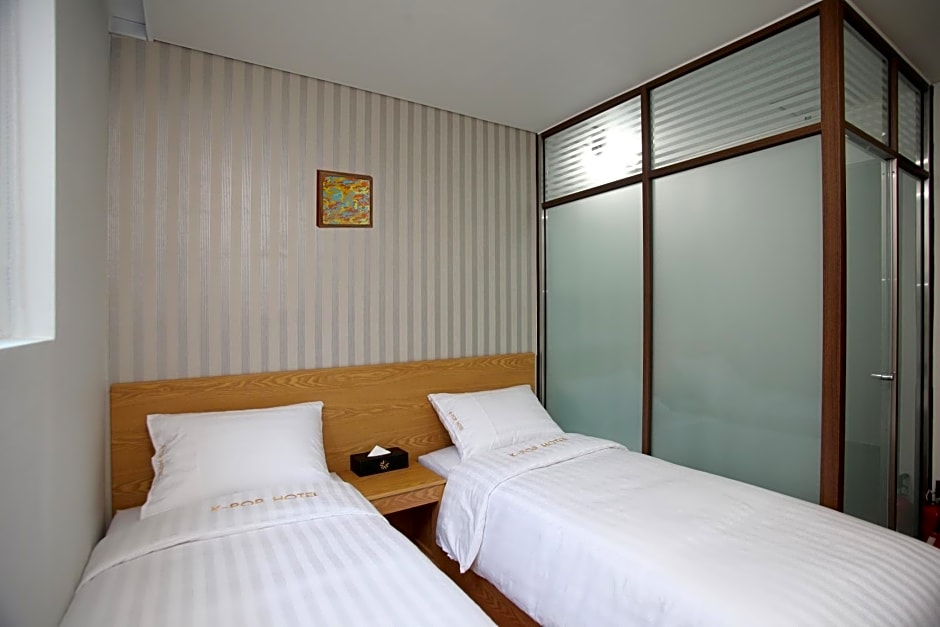K-POP Hotel Seoul Station offers two types of rooms: Twin Room and Double Room. Both rooms are 108 sqft in size and do not allow smoking. The Twin Room accommodates 2 adults and 1 child with 2 twin beds, while the Double Room accommodates the same number of guests with 1 double bed.