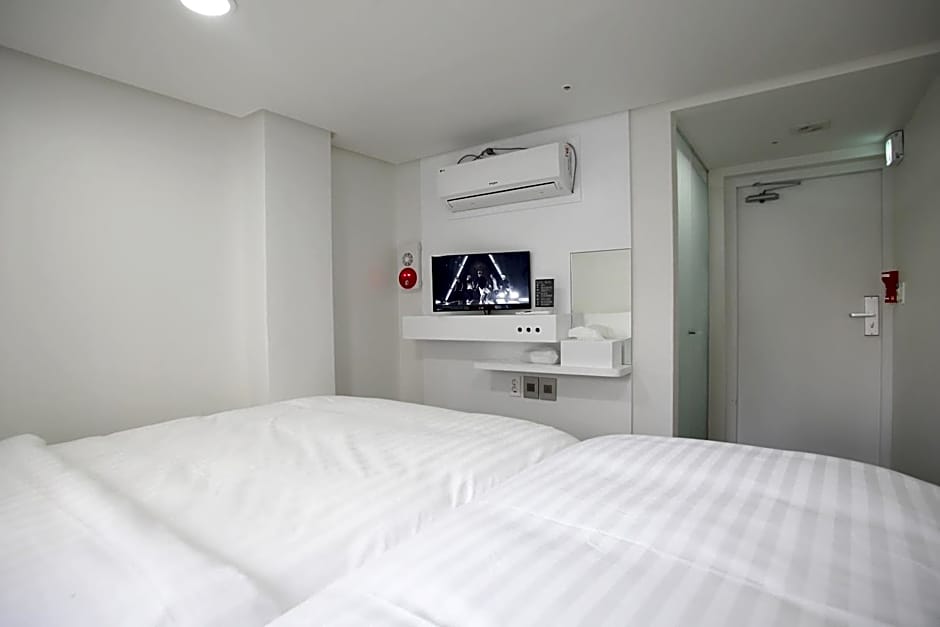While this hotel offers basic, inexpensive rooms, we have never been disappointed with the service, cleanliness, and room amenities. There is power for both Korean and US gadgets. The beds are comfy. The shower room has everything you need. Great value for the money.