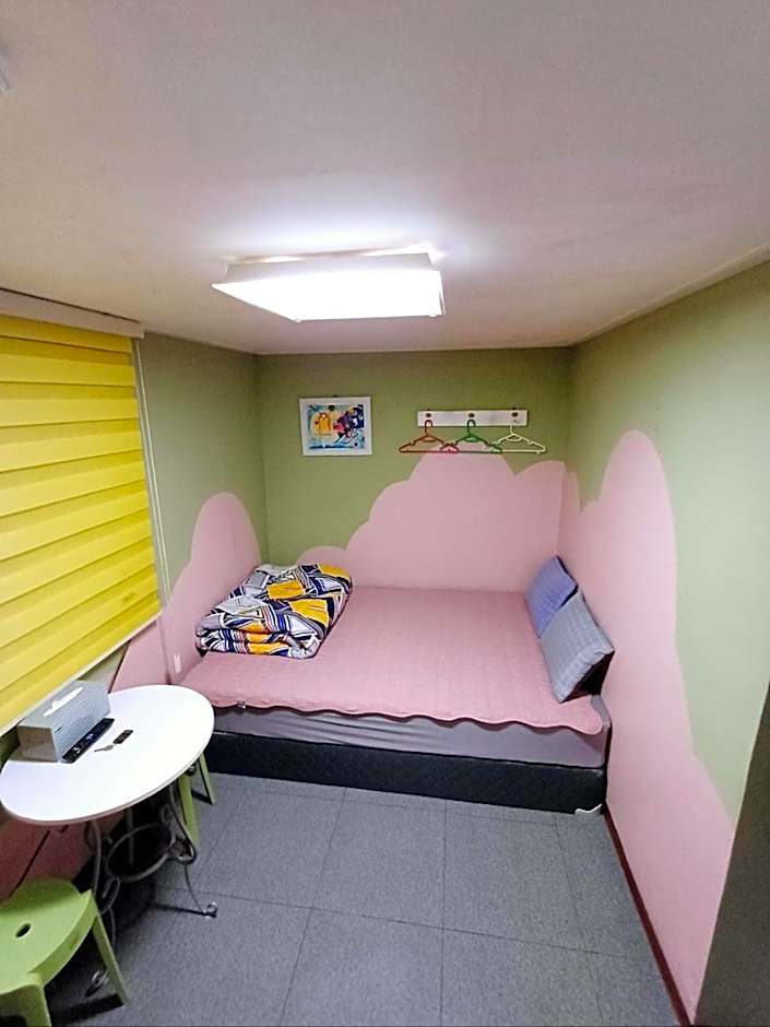 Near subway and bus stop. There olive young, CU, G25 nearby just walking distance. Its cold during my visit, so free flow instant coffee is good plus they have water dispenser, microwave and iron on the lobby. Can change towel everyday. Big bottle body wash, shampoo and toothpaste.d large fridge outside the room.