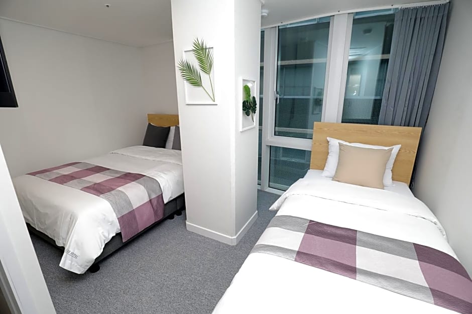 Featuring free toiletries, this quadruple room includes a private bathroom with a shower, a hairdryer and slippers. The air-conditioned quadruple room features a flat-screen TV with cable channels, a private entrance, soundproof walls and a carpeted floor. The unit has 3 beds.