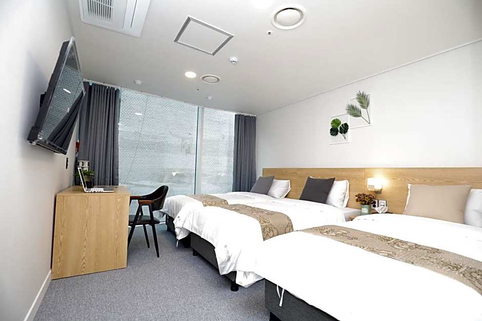 Providing free toiletries, this triple room includes a private bathroom with a walk-in shower, a hairdryer and slippers. The air-conditioned triple room provides a flat-screen TV with cable channels, a private entrance, soundproof walls, a carpeted floor as well as city views. The unit offers 3 beds.