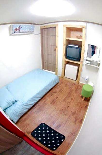 The immediate neighbourhood is not very nice, and it is not easy to find the place since there are no street signs and nothing is written on the back door that leads to the apartment. You must touch the keypad to illuminate the numbers and enter the pin - it took a while to find it out. There is actually no staff, everything is automatic. However, it would have been nice to find somebody there who can help calling a taxi. There is a strange opening on the wall of the kitchen (covered by a curtain) that leads to other rooms via a ladder. We were afraid that someone comes in there and steals our belongings. (However, Korea seems to be a very safe place.)