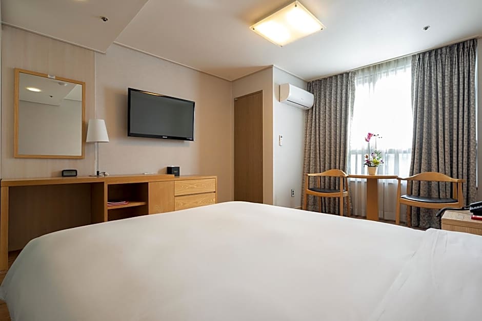 The room was very large. The bed was extremely comfortable. We loved that there were so many storage options in the room. The shower was spacious. The Japanese style toilet is great. The room and bathroom both were very clean. The room was cleaned everyday and clean sheets were put on. The hardwood floors are always our preference over carpet so we were super happy that it was the case. The fridge in the room was also really helpful. There are great cafes nearby which is good for a quick bite any time of the day as they open early and close late. The location is great, this is our second time staying in this area in Seoul, it’s always a pleasure.