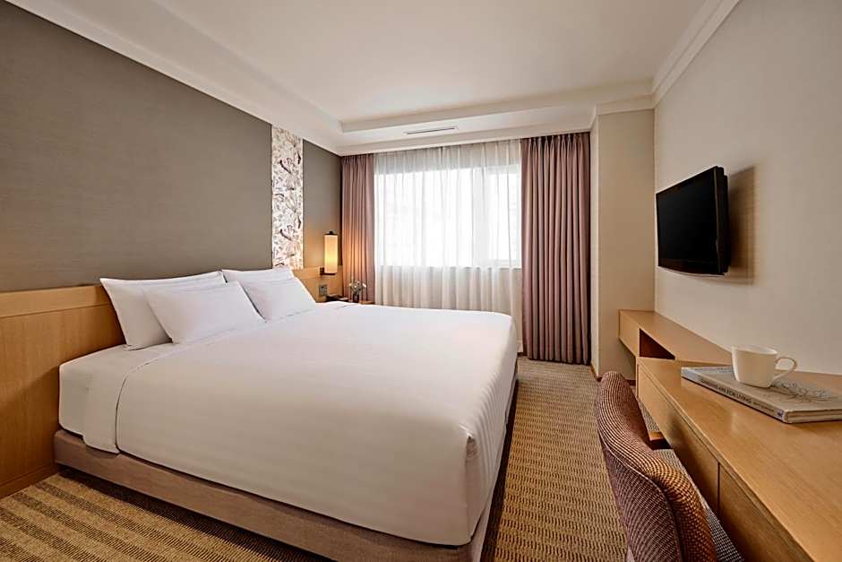 Located on the 14th or higher floors, this room features a seating area with a desk, a coffee table and a flat-screen LCD TV. Goose feather duvet and pillows are provided for your comfort. Private bathroom is fitted with a bath and a toilet with an electronic bidet. We provide a welcome drink available in the lounge.