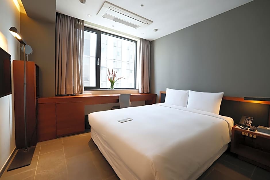 the rooms were very clean and comfortable. the housekeeping ladies were very friendly and cleaned our room very thoroughly every day. i loved that the room had individual AC controls, and multiple light options. the AC system was very strong as well, a must during the korean summer. the room is kind of tight, but is manageable. the staff at the front desk were very friendly as well, and it is staffed 24 hours. you can leave your bag if you check in too early or check out but have a later flight. the location is great! 10min walk to city hall station, a lot of eateries around (open till late as well), many convenience stores in the vicinity as well. there were 3 seperate convenience stores within a 10min walk. the hotel also has a little loading area so any taxi or rideshare you call can park and wait. in the basement, there is a large lounge area you can sit and chat or even eat a meal at. the lounge features restrooms and a printing station (although i wasn't able to get it to print)