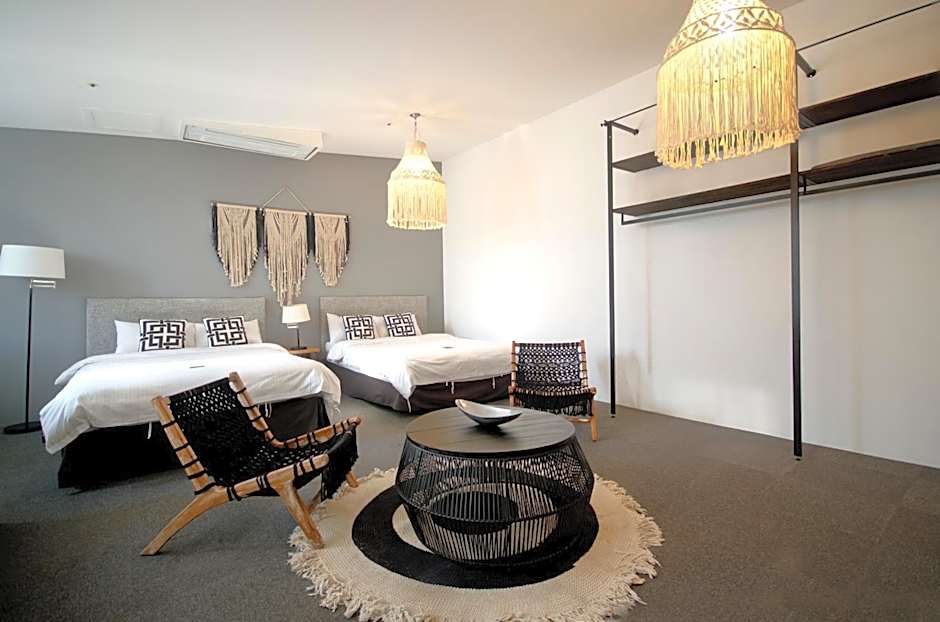 Uniquely designed, two bedrooms suite has two separate rooms for 4 people and one bathroom. Featuring concrete heated flooring, there is a fully equipped kitchen and two queen-sized beds.