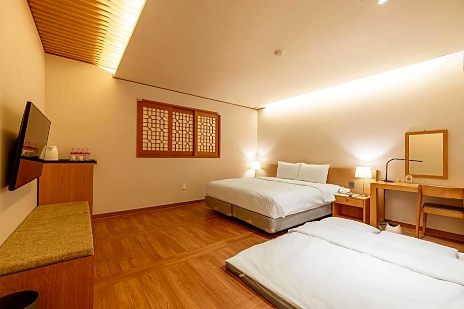 Featuring Ondol, Korean heated flooring, the deluxe double room comes with an extra-large double bed. This room can accommodate up to 4 guests, and traditional futon mats are provided for extra bedding.