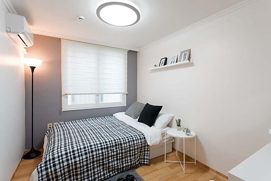 We took the family room. The host was friendly and helpful. The whole place was very clean and tidy with a kitchen and dining area on all levels. The shared toilet was also very clean and spacious. The kitchen was well-equiped with utensils. There is a shared fridge with free bread and jam provided by the host. The microwave and toaster are provided. A very comfortable place to stay with 5 to 8 min walk to hongsik university station exit 3. It would be wonderful if they could have a lock for the bathroom in the shared family room.