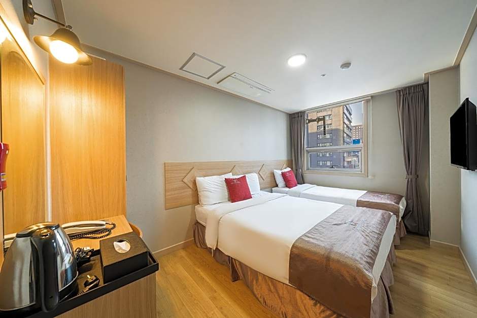 With 271 reviews, The Stay Hotel Myeongdong offers a comfortable and convenient stay for travelers. The hotel provides a range of amenities including free WiFi and air conditioning, along with a 24-hour front desk, non-smoking rooms, and a sun deck where you can relax and take in the views. The rooms feature private bathrooms, free toiletries, and extra-long beds for your comfort.