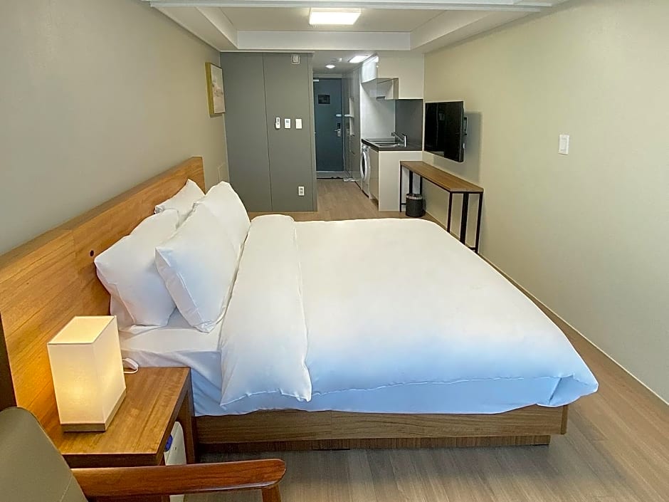 Excellent location within walking distance to Sokcho Express Terminal, the fish market, Daiso and e-mart supermarket. I did not use the stove but the fridge was useful for storing dinner and breakfast. The bed was incredibly comfortable. (It's a firm mattress). My room was next to the car park (with some view of the mountain) but I was surprised how quiet it was. Good room layout - storage of items are near the door.
