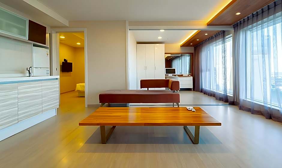 Only 5 minutes walk from Sokcho Express Bus Terminal, which was critical to us. A few minutes from Sokcho beach. Reasonably central to the city. Extremely spacious becauase this resort used to be 'condominium'. All cooking utensils are in the kitchen cupboard. Staff were helpful in keeping luggage before check-in & after check-out.