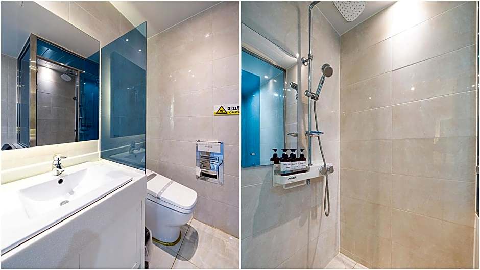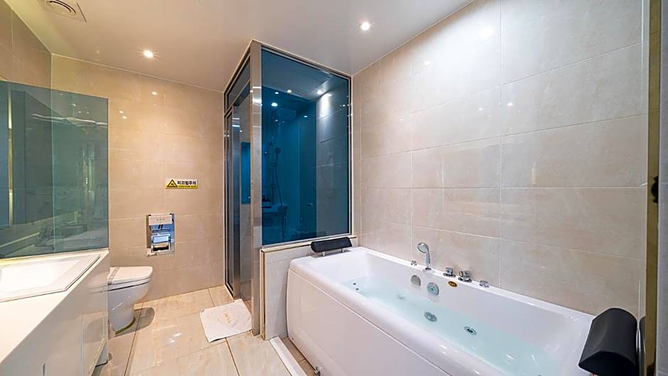 Nice new bathroom with a big jacuzzi bathtub, overhead shower,, bidet. Nice view with a big window. All amenities. Near Lotte mall.
