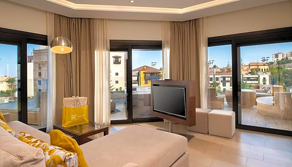Guests at GF Victoria can indulge in a variety of leisure amenities during their stay. They can enjoy the outdoor swimming pool, complete with a waterslide and a shallow end, offering delightful experiences for both adults and children. The hotel boasts a water park, water sports facilities, and even a kids' club, promising countless hours of entertainment. For those seeking relaxation, the spa, sauna, hot tub, and steam room provide an ideal retreat. The hotel also features a fitness center, tennis court, and a golf course for active guests. Furthermore, visitors can savor a delicious dining experience at Chaboco, serving Mediterranean, Spanish, and International cuisines, among others. With the serene ocean view, the hotel's outdoor spaces like the sun deck, garden, and terrace offer tranquil settings for unwinding.