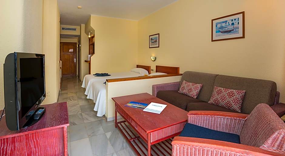 At HOVIMA Atlantis, the available rooms include the Standard Studio for 2 adults, the Standard Studio for 2 adults + 1 child, and the Estudio Estándar for single occupancy. Smoking is not allowed in any of these rooms. The rooms accommodate either 1 adult or 2 adults, feature twin beds, a sofa bed, and have a room size of 344 sqft.
