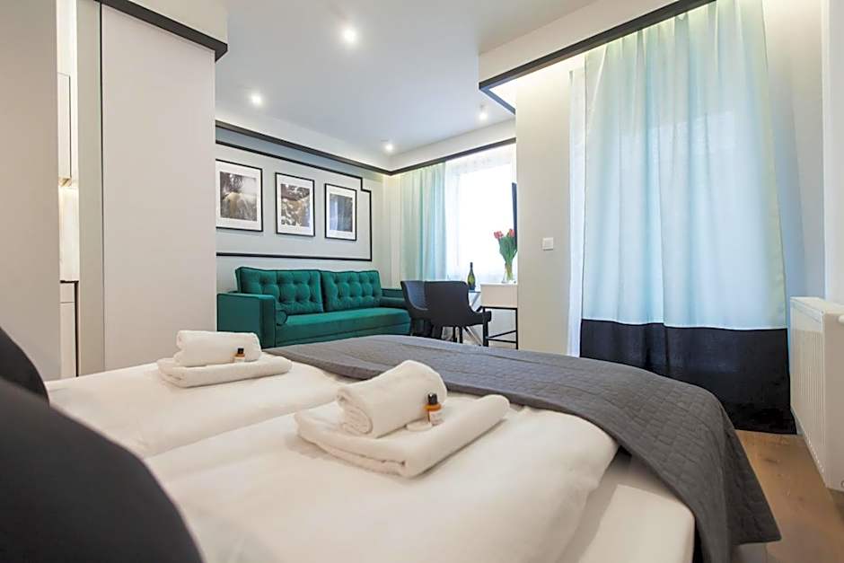 This one-bedroom apartment is decorated with pastel colors and wooden furnishings. It features a lounge with a sofa and a TV, as well as a kitchenette with an electric oven, electric hob and a fridge. It includes either a balcony or a terrace.
