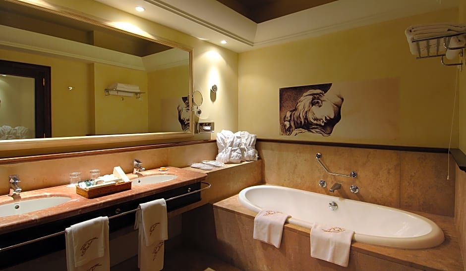 The hotel offers a variety of room types including double rooms, triple rooms, suites, and villas, with a maximum occupancy ranging from 2 adults to 2 adults and 2 children. All rooms have a minimum size of 431 sqft and feature a King size bed with additional twin beds or sofa beds. Smoking is not allowed in any of the rooms. The Superior Double Room with Sea View and the Villa Solarium both offer sea views.