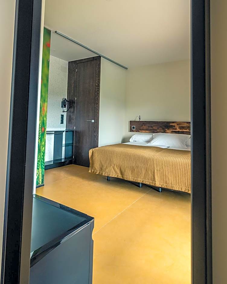 A beautiful old convent remodelled into an hotel, restaurant and cafe with large gardens set in a quiet village. Plenty of parking and a couple of charge points for EV's. In our case, a large, dog friendly room and access to the well equipped communal kitchen dining room for breakfast. There is a mainline train station opposite. Outstanding value for money.