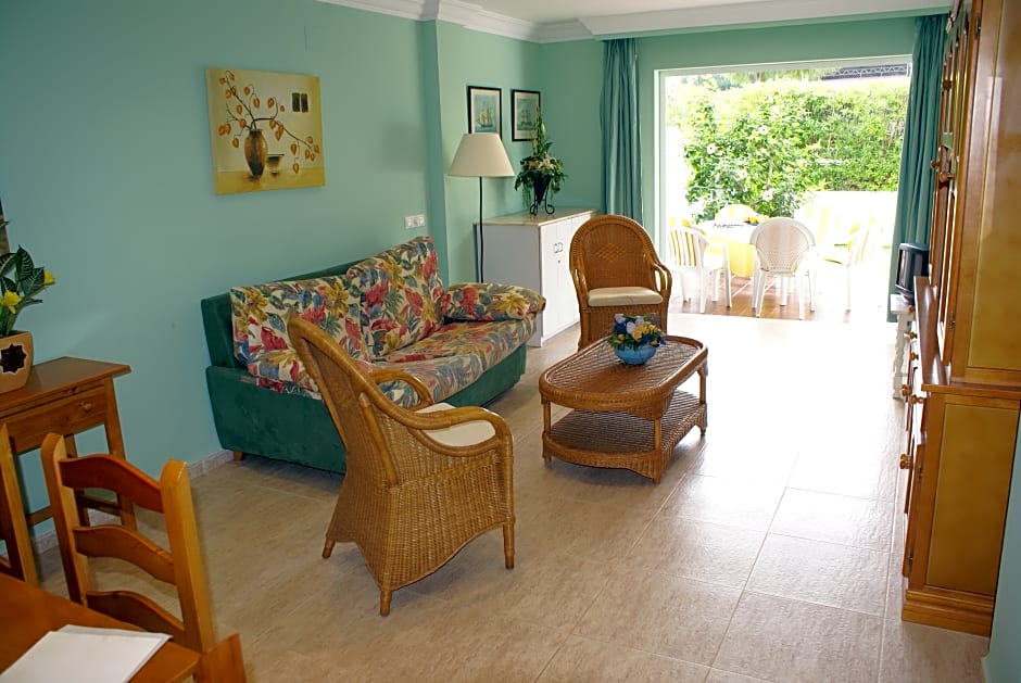 No breakfast, ate our own. The location was near the beach, shop, bus stop etc. The pool was nice & quiet, also close to the beach, so wasn’t busy. We don’t swim now anyway. The apartment was spacious, ground floor with a nice little garden, with 2 loungers. Very nice!