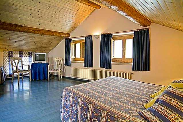 The spacious family room offers a wardrobe, a safe deposit box, as well as a private bathroom boasting a bath and a bidet. This family room has parquet floors, heating and a flat-screen TV. The unit has 3 beds.