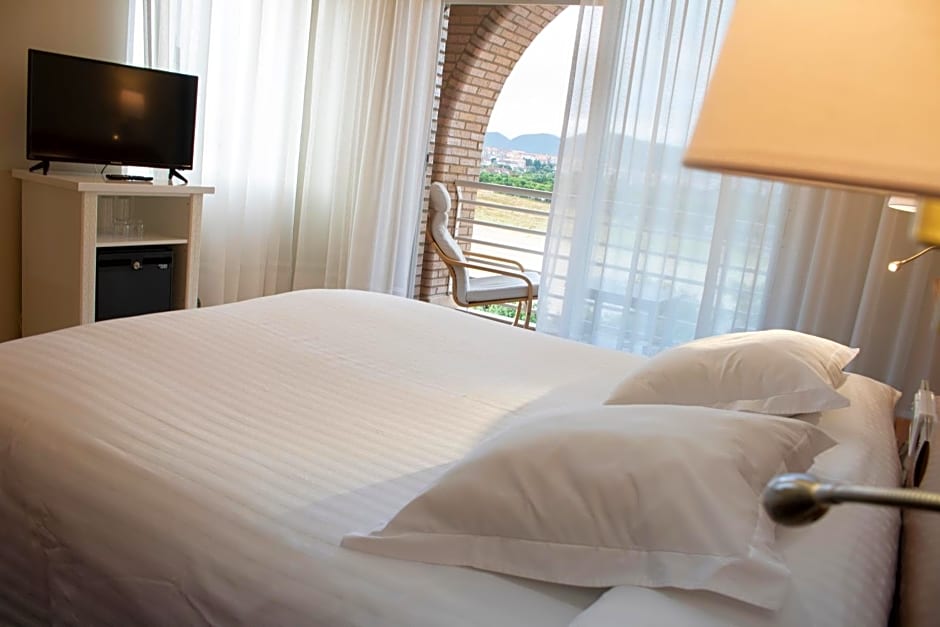 This room has a private balcony or terrace with views of the mountains. It has either 2 single beds or 1 double bed. All rooms are air conditioned and feature a mini-bar, safe and TV.