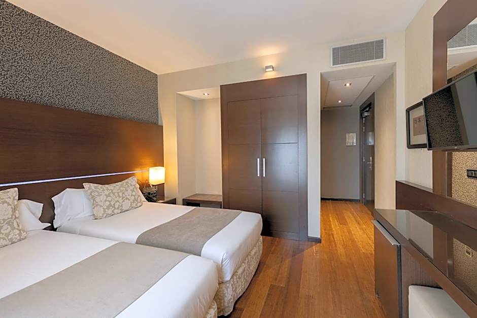 The Barcelona Hotel Colonial offers Double or Twin Rooms with a size of 161 sqft. These rooms can accommodate 2 adults and do not allow smoking. The beds available in these rooms are 2 Twin beds. Additionally, the hotel also has Double or Twin Rooms with Extra Bed which can accommodate 3 adults and 1 child. These rooms have the same size, smoking policy, and bedding configuration as the regular Double or Twin Rooms, but with the addition of 2 Sofa Beds and 1 Double bed.