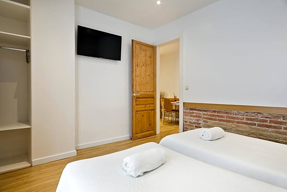 Very friendly staff. For us great locaton, between two metro stations, bus stop V17 50m away for returning from center when you are a bit tired. Close are supermarket, bakery, restaurants, caffe... 20 min walk to Park Guell. Apartment no.2 had all you need for our family 2+2. Two rooms, a kitchen area with table. Every room has TV. Wi-fi was good. Balcony without a view but ok. Need some little refresh in short time, but everything works. There was aditional movable heating in the apartment and bathroom for colder months, not ideal but did the work. Thin walls, you hear neighbours when arrive and go, not a big problem for us. Again, very friendly staff, gave a ton on usefull information and checked all the time if in need of something. Thanks.